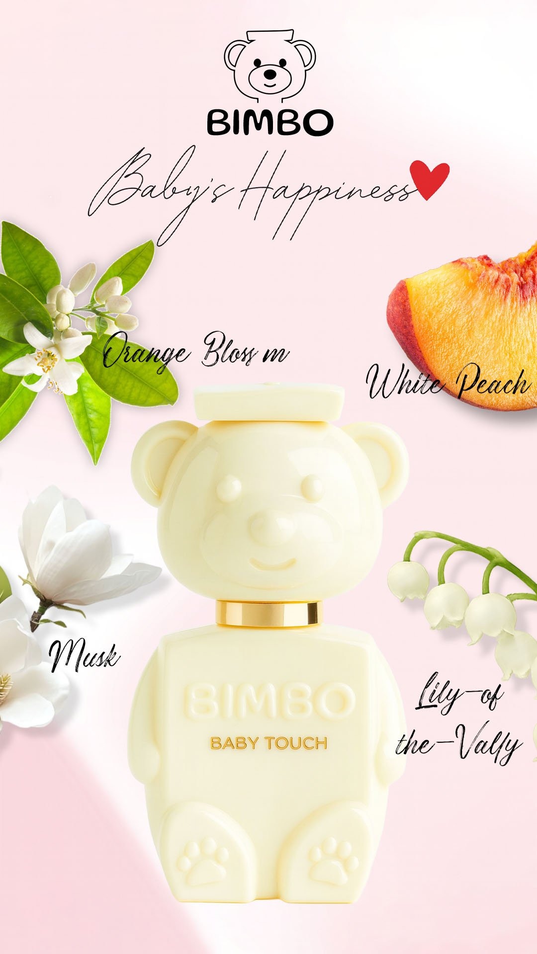 عطر بيمبو بيبي تتش عطر الطفل السعيد، صنعنا هذا العطر بإلهام من نعومة بشرة الطفل وسحر ضحكاته وروحه المفعمة بالحيوية والنقاء مكونات هذا العطر تم مزجها لتجسد تجربة حسية تحاكي المشاعر وروح الطفولة.
